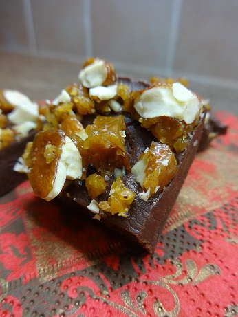 A je to tady. Po roce zase Vánoce. Část tradičního českého cukroví už je doma napečená, letos ale určitě vánoční stůl obohatím o nějakou tu typickou americkou záležitost :) A jednou z nich je fudge - čokoládová cukrovinka, tentokrát ve vánočním kabátku s voňavými karamelovými mandlemi. Jednoduché cukroví, které určitě dodá šmrnc vánočnímu hodování.